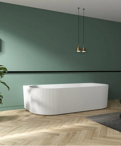 The Scanalato Piatto 1500mm Bath combines refined Italian-inspired design with modern practicality. Crafted with a striking fluted exterior and smooth matte white finish, this elegant back-to-wall bath creates a seamless connection between form and function.